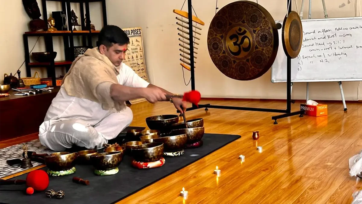 Now imagine sitting quietly in a soft-lit room where someone gently explains what comes next. When the singing bowls begin, sound waves move through the air, slowing down your thoughts. This rhythm eases tension while aligning physical sensations with stillness.